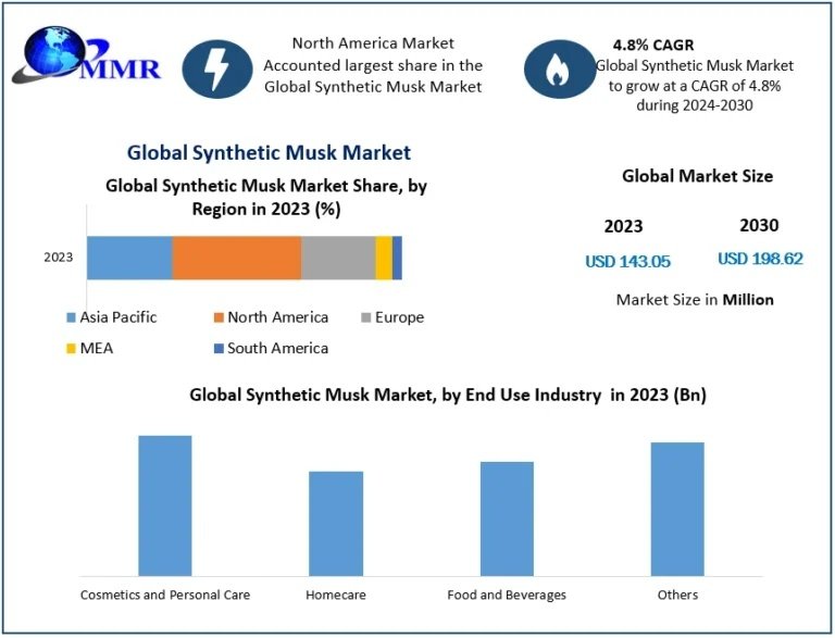 The Synthetic Musk Market has emerged as a vital segment within the global fragrance and aroma chemicals industry. Synthetic musk compounds are widely used as key ingredients in perfumes, cosmetics, detergents, and personal care products due to their long-lasting scent and cost efficiency compared to natural musk. Over the years, manufacturers have increasingly shifted toward synthetic alternatives to address ethical concerns and regulatory restrictions associated with animal-derived musk. This transition has significantly contributed to the expansion of the Synthetic Musk Market, making it a cornerstone of modern fragrance formulation.