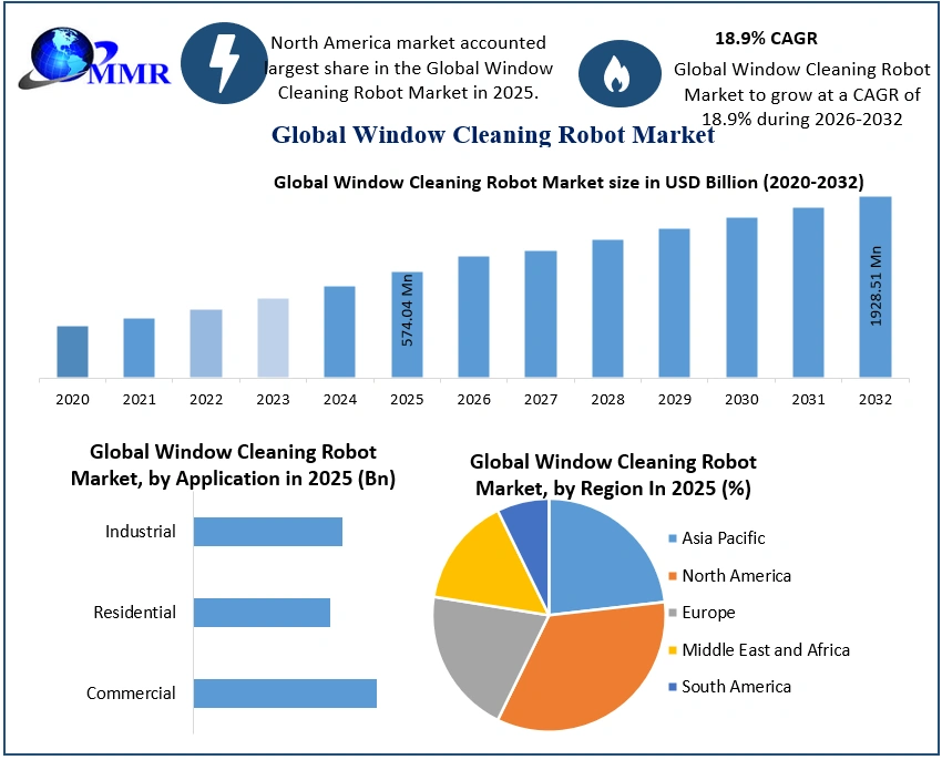 The Global Window Cleaning Robot Market is poised for remarkable growth as automation and smart home technologies continue to reshape the cleaning industry. Valued at USD 574.04 Million in 2025, the market is projected to grow at a CAGR of 18.9% from 2026 to 2032, reaching nearly USD 1,928.51 Million by 2032.